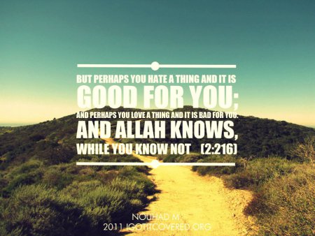 মানুষকে মেনে নিতে হবে যে তার ভাগ্যে যা আছে তা আল্লাহ সৃষ্টি করেছেন। তাকে তাই যেকোন অবস্থাতেই আল্লাহর উপর খুশি থাকতে হবে। আমাদের দায়িত্ব হচ্ছে আল্লাহ আমাদের ভাগ্যে যা রেখেছেন তা খুশি মনে মেনে নেয়া। কোন বিপদে মন খারাপ না করে আল্লাহকে ধন্যবাদ দিতে হয়, তার প্রশংসা করতে হয় কারণ এর চেয়ে বড় বিপদ তিনি দিতে পারতেন। আল্লাহ যখন কোন মানুষের জীবনে কোন বিপদ বা দুঃখ-কষ্ট দেন তখন তার তিনটি ভাল দিক থাকে –
