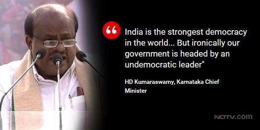 আছেন কর্ণাটকের মুখ্যমন্ত্রী এইহ ডি কুমারস্বামী। তিনি তার বক্তব্যে বলেন, “ভারত বিশ্বের সব থেকে বড় গণতন্ত্র, কিন্তু দুঃখজনকভাবে ভারতের গণতন্ত্র একজন অগণতান্ত্রিক নেতার দখলে রয়েছে”।