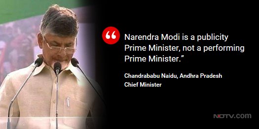 অন্ধপ্রদেশের মুখমন্ত্রী চন্দ্রবাবু নাইডু তার ভাষণে বলেন “আমাদের একটাই লক্ষ্য, ভারতকে রক্ষা, গণতন্ত্র রক্ষা। বিজেপি ভারতকে ভাগ করেছে, আমরা ভারতকে আবার ঐক্যবদ্ধ করব”।