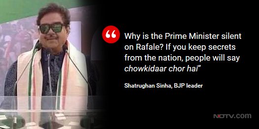 যোগ দিয়েছেন বিজেপি সাংসদ শত্রুঘ্ন সিনহা, তিনি বলেছেন “মোদি কেন রাফালে নিয়ে চুপ! মুখ না খুললে লোকে তো বলবেই চৌকিদারই চোর”।