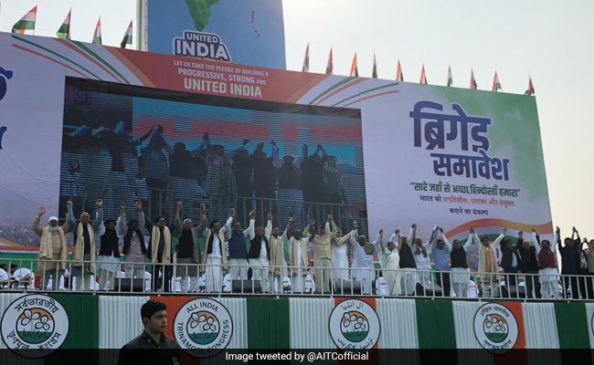 ইউনাইটেড ইন্ডিয়া ট্যাগ লাইনে ডাকা ব্রিগেড ময়দানে হাজির হয়েছেন সারা ভারত থেকে একগুচ্ছ নেতারা। এসেছেন আঞ্চলিক দলগুলির নেতৃবৃন্দ।