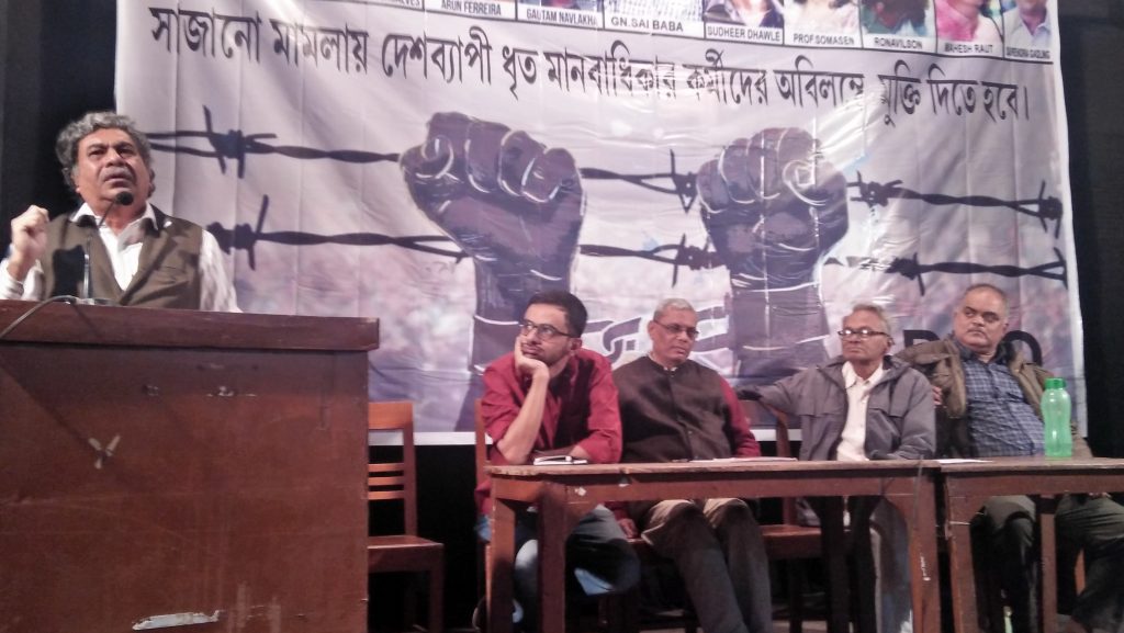 এই সভাই উপস্থিত সকল বক্তাগণ বর্তমান ভারতে বিজেপি তথা আরএসএস-এর কার্যকলাপে ভারতের সাধারণ কৃষক, দলিত, সংখ্যালঘু মুসলমান অত্যাচারিত ও নিপীড়িত হচ্ছে। কোথাও চলছে দলিতদের উপর আবার কোথাও চলছে সংখ্যালঘু মুসলমানদের। মোদী জমানায় বিজেপি নেতাদের সম্পদের পরিমাণ বেড়ে চলেছে। আর অন্যদিকে নিপীড়িত ও নির্যাতিত হচ্ছে নিচুস্তরের সাধারণ মানুষ। কৃষক তার ফসলের ন্যায্য মূল্য পাচ্ছে না। অর্জুন প্রসাদ সিং তার বক্তব্যে বলেন “এমনকিছু আইন বানানো হয়েছে, যা দিয়ে সাধারণ মানুষকে যখন তখন গ্রেফতার করা হচ্ছে, আর একবার গ্রেফতার হলে তারা আর মুক্তি পাচ্ছে না, যেমন – TADA, POTA, UAPA, AFSPA ইত্যাদি”। তিনি মোদী সরকারের বিকাশ সম্পর্কে বলতে গিয়ে বলেন “অর্থের মূল্য দিন দিন কমে যাচ্ছে”। অমিত দ্যুতি কুমার মানবাধিকার কর্মীদের সম্পর্কে বলতে গিয়ে বলেন ‘মানবাধিকার কর্মীদের দমিয়ে দেওয়ার চেষ্টা করা হচ্ছে, রাজনৈতিক বন্দি, সংখ্যালঘু ও পরিবেশের জন্য আন্দোলন করছেন যারা তাদের মিথ্যা মামলায় জেলে বন্দি করা হচ্ছে।’ তিনি আরও বলেন ‘মোদী সরকারের আকাশচুম্বী মূর্তি করার লক্ষ্য হল হিন্দুত্ব শক্তিকে বাস্তবায়িত করা। আরও তিনি বলেন অন্যায় যত বাড়বে মানবাধিকার কর্মীদের সঙ্গবদ্ধতা আরও বাড়বে।’ এই সভার অন্যতম আকর্ষনীয় বক্তা হলেন উমার খালিদ। তিনি মোদী সরকার সম্পর্কে বলেন – এই সরকার কীভাবে আজ পর্যন্ত দাড়িয়ে আছে তা হল ‘ডিভাইড অ্যান্ড রুল’ এবং টেররিজমের উপর। ফ্যাসিস্ট শক্তিকে ব্যবহার করা হচ্ছে। তারা গোহত্যার নামে, লাভজিহাদের নামে সাধারণ সখ্যালঘু মুসলিমদের হত্যা করছে। আজ আমাদের সাথীরা কেন জেলে যাচ্ছে? তার একমাত্র কারণ সরকারের বিরুদ্ধে বলছে। কৃষকরা আজ তাদের ফসলের ন্যায্য মুল্য পাচ্ছে না। তাদের অধিকার নিয়ে আন্দোলন করতে গেলে তাদেরকে গুলি করা হচ্ছে। মোদী সরকারের কেন্দ্রীয় চাকুরি সম্পর্কে বলেন – মোদী বলেছিলেন প্রতিবছর ২ লাখ যুবকদের চাকরি দেওয়া হবে। আজ পর্যন্ত তা বাস্তবায়িত হয়নি। সর্বশেষে তিনি বলেন এই দেশে এক সন্ত্রাসী চিন্তা ভাবনাকে সরকার রুপ দিতে চাইছে। এর সরকারের বিনাশ করার প্রয়োজন। তা না হলে ভারতে গণতন্ত্র হারিয়ে যাবে।