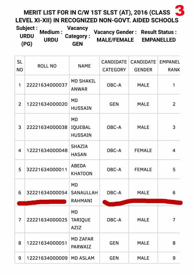 ওয়েস্ট বেঙ্গল সেন্ট্রাল স্কুল সার্ভিস কমিশন প্রকাশিত প্যানেল এবং ওয়েস্ট বেঙ্গল বোর্ড অফ সেকেন্ডারি এডুকেশনের নিয়োগপত্র খতিয়ে দেখার পরে ১০০ শতাংশ নিশ্চিত হয়েছি যে, শিক্ষক সানাউল্লাহ-র সুপারিশ ও নিয়োগপত্র সম্পূর্ণ বৈধ ছিল এবং সঠিক পদ্ধতি মেনেই হয়েছে। স্কুল সার্ভিস কমিশন প্রকাশিত ফাইনাল মেরিট লিস্টে উর্দু মাধ্যমের উর্দু ভাষার জন্য জেনারেল পিজি ক্যাটাগরিতে তিনি ছয়তম স্থান দখল করেন(চিত্রঃ 3)। কাউন্সিলিং-এর সময় সানাউল্লাহ দাড়িভিট হাইস্কুল পছন্দ করেন। সেই অনুযায়ী, ১৩/০৯/২০১৮ তারিখে ওয়েস্ট বেঙ্গল বোর্ড অফ সেকেন্ডারি এডুকেশন নিয়োগপত্র দেয়(চিত্রঃ 4)। নিয়োগপত্রে উল্লেখিত মেমো নম্বরঃ WBBSE/App./UDJ/URDU-(PG)/AT-0223 এবং ২৬/০৭/২০১৮ তারিখে ওয়েস্ট বেঙ্গল স্কুল সেন্ট্রাল সার্ভিস কমিশনের সুপারিশ করা মেমো নম্বরঃ 5/6913/AT(PG)-URDU/CSSC/ESTT/2018.