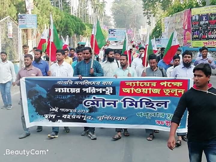 উল্লেখ্য পপুলার ফ্রন্ট অফ্ ইন্ডিয়া সারা দেশব্যাপী রায় পুনর্বিবেচনার দাবিতে আন্দোলন করছে। পোষ্টার, হ্যান্ডবিল, প্রতিবাদ সভা, মৌন মিছিল ইত্যাদির মাধ্যমে এই আন্দোলন করছে। আজ মুর্শিদাবাদের সদর শহর বহরমপুরে মৌন মিছিলের আয়োজন করে। এই মিছিল বহরমপুর শহর পরিক্রমা করে।